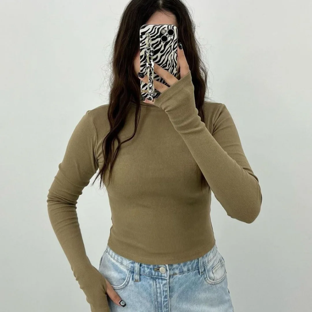 تاپ کراپ کبریتی نخی آستین دار پاییزی